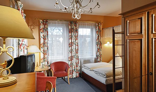 Alle 52 Zimmer und Suiten sind individuell und sehr stilvoll im englischen Landhausstil eingerichtet und vermitteln das Gefühl, bei einer Fürstenfamilie zu Gast zu sein. Die Schlosszimmer Komfort verfügen über ein Doppelbett oder zwei getrennte Betten, Bad mit Badewanne oder Dusche, Bademäntel und Slipper, Föhn, Telefon, WLAN, TV, Minibar und Safe, die meisten der Zimmer blicken auf den Schlosspark.