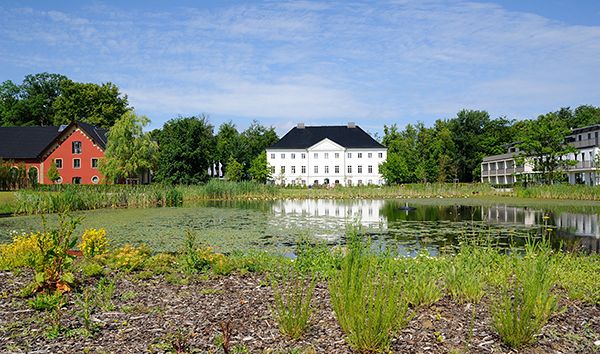 Stilvolles und traditionsreiches Ferienhotel mit eleganter Atmosphäre, bestehend aus dem 1745 erbauten Schloss, dem modernen, neu errichteten Parkgebäude mit Hotelrezeption und Echtholzkamin sowie dem Pferdestall. Exklusives „Schlossrestaurant“ mit Blick auf den Park und die uralte Lindenallee bis hin zur Ostsee und großzügige Terrasse, „Dornier Bar“, Bibliothek, Internetterminal, Beautysalon; rustikale „Brasserie“ im Pferdestall mit Mecklenburger Spezialitäten und hausgemachten Kuchen und Torten; Lift (Parkgebäude), Parkplatz.