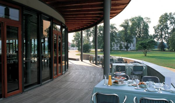 Das luxuriöse Hotel in zeitgenössischem Design und mit historischem Ambiente ist Teil eines weitläufigen denkmalgeschützten Ensembles aus klassizistischen, von Karl Friedrich Schinkel geprägten Gebäuden. Das Landgasthaus „Brennerei“ mit Terrasse serviert regionale Gerichte, À-la-carte-Restaurant „Kleine Orangerie“ (geöffnet April bis Oktober), Schlossbibliothek, Internetterminal, Wireless LAN, Lift, Parkplatz, Garage.